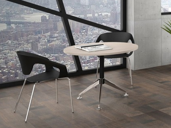 Mesa de juntas de 1.00 de diámetro con base metálica importada en acabado pintura color negro con cromo, en melamina