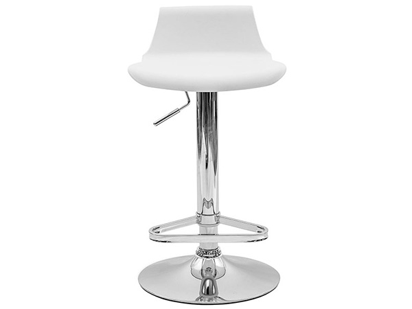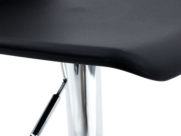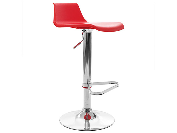 Banco asiento de plástico con base hidráulica en metal cromada.