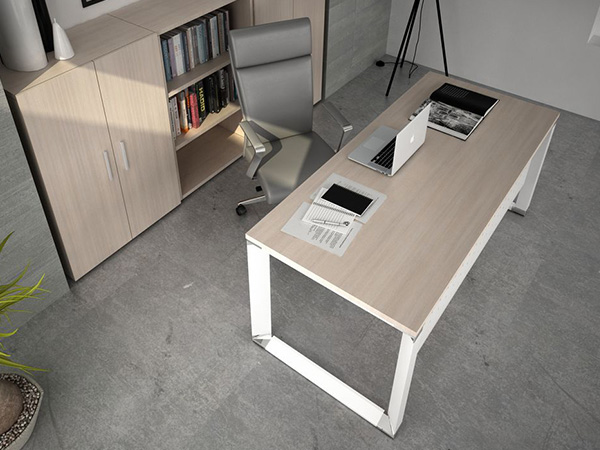 Escritorio ejecutivo 1.80 x 0.80 con base metálica importada en acabado pintura color gris o blanca.